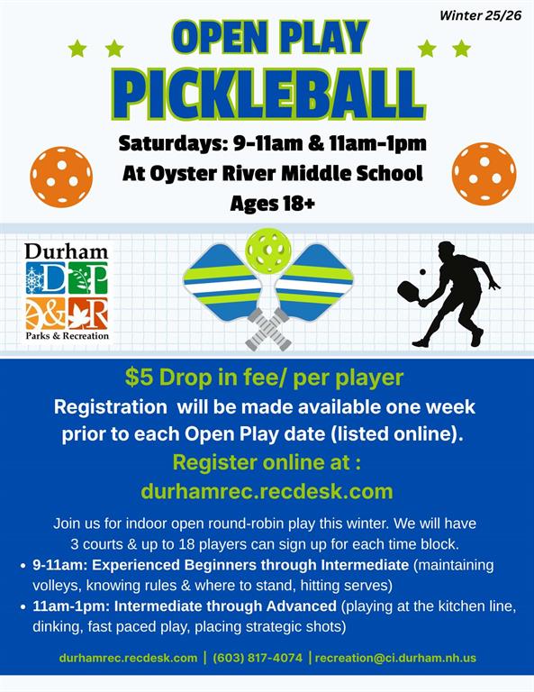 Register for Open Play Pickleball Sessions on Saturdays HERE